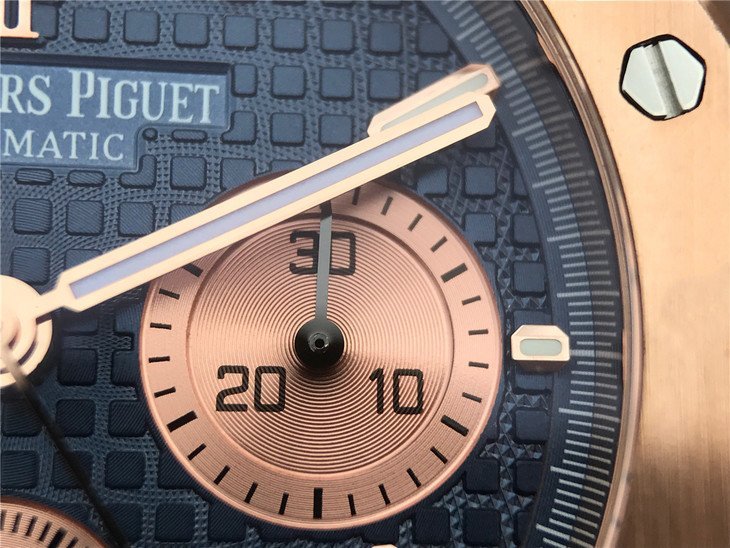Genuine Swiss 7750 Movement re-aligned to resemble the 3126 Audemars Piguet Movement with Functional stopwatch feature like the authentic