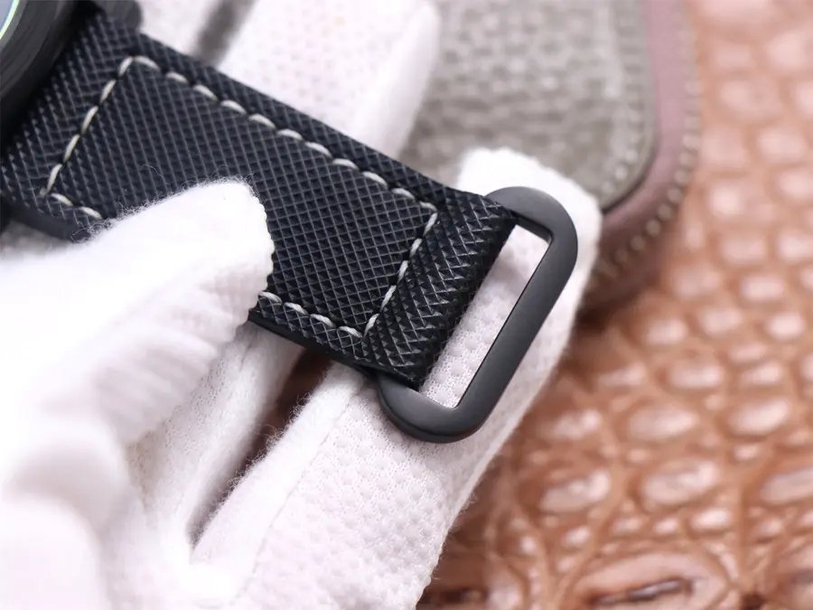 Strap/Bracelet: Sportech strap with luminescent stitching, velcro closure, and titanium ring.