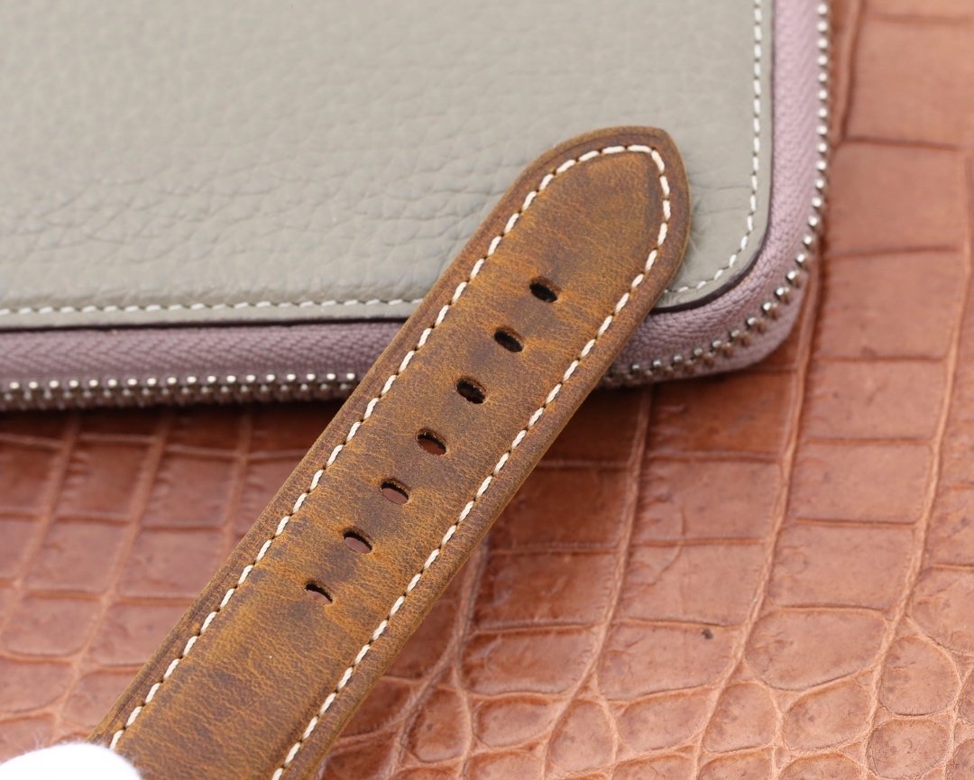 Genuine Brown Leather Strap with PVD Coated Tang Buckle