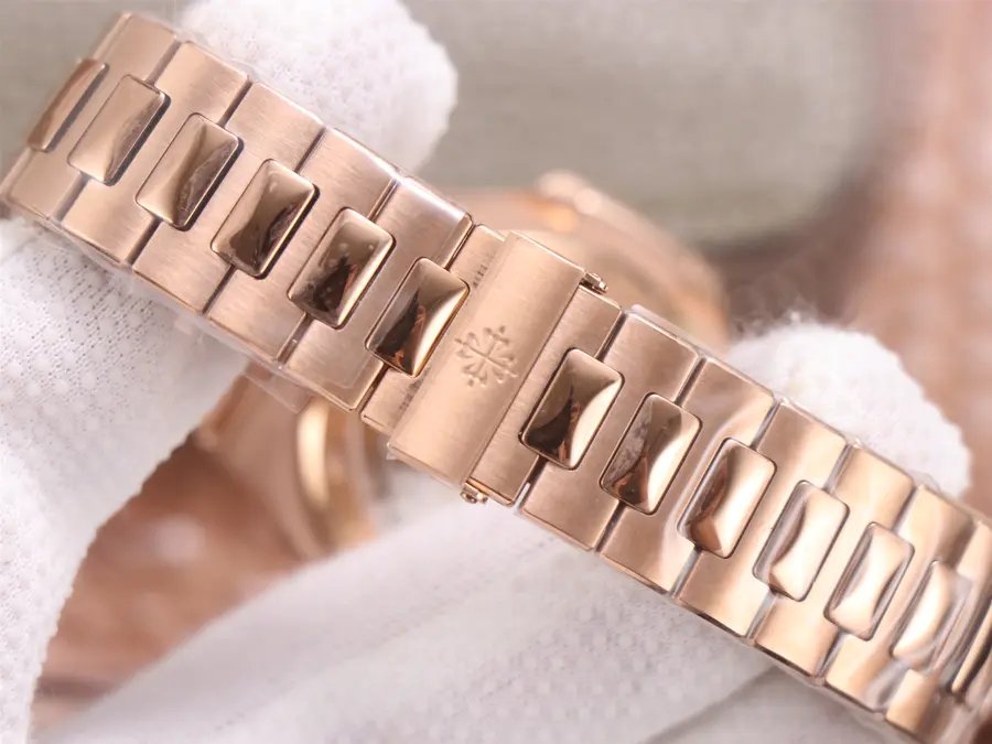 18K Rose Gold wrapped904L Solid Stainless Steel Strap linked with Screws with Folding Patek Philippe Clasp.