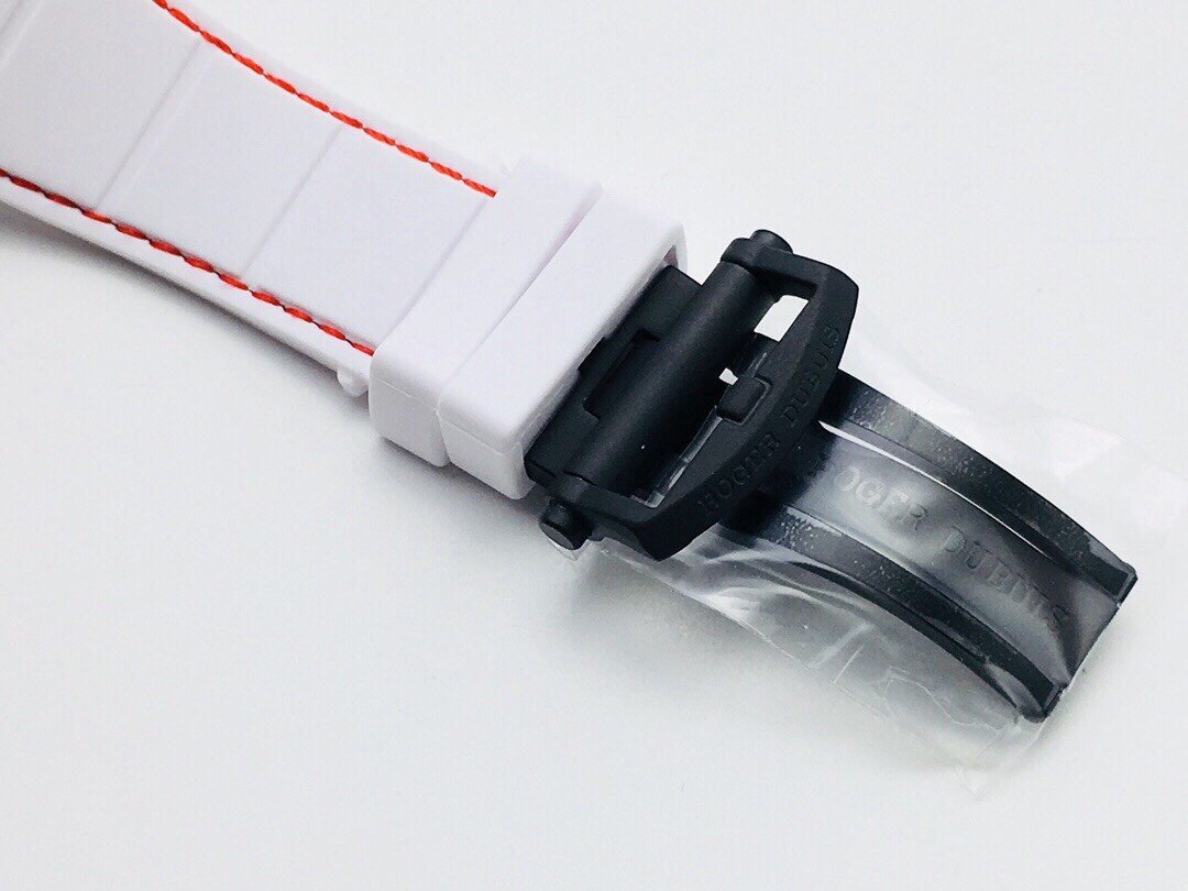 Bracelet: White & Black Rubber Strap with Single Fold Deployant Buckle