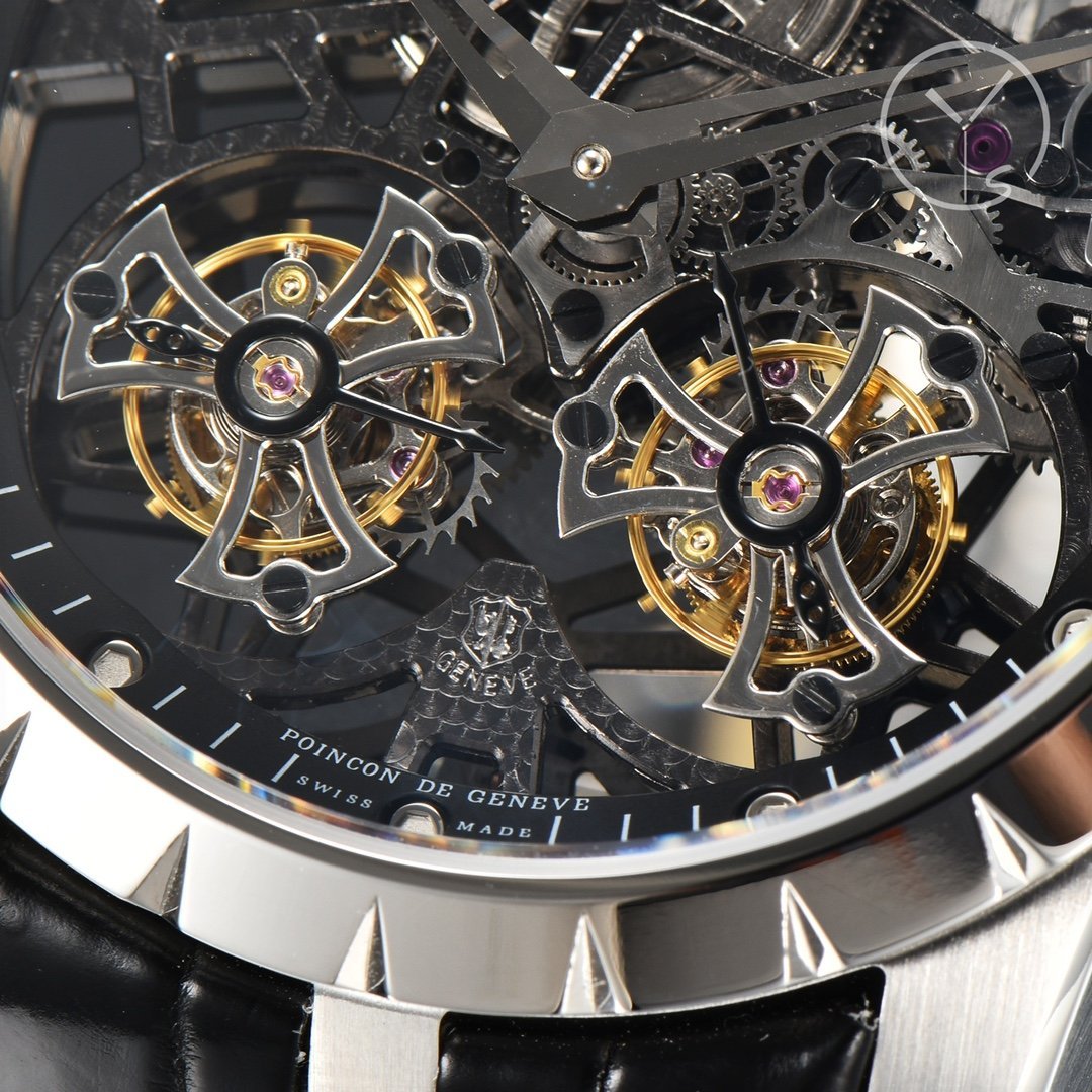 The Roger Dubuis King series hollow double flying tourbillon 1:1 Superclone has the following specifications: